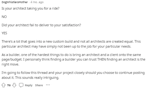 Or you may have to abandon the project altogether and lose the $10,000-$50,000 you paid for an architect to design your new home.